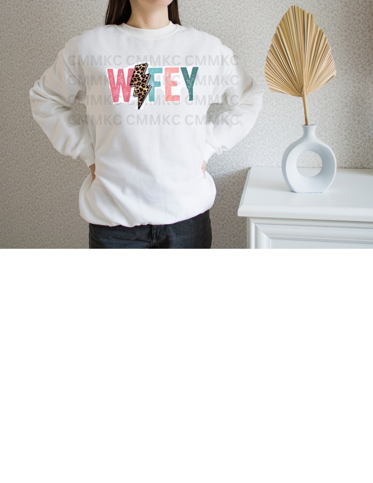 "Adorn yourself in our vibrant Wifey sweatshirt, featuring a charming print across the chest. Perfect for showing your love and devotion as a proud spouse."