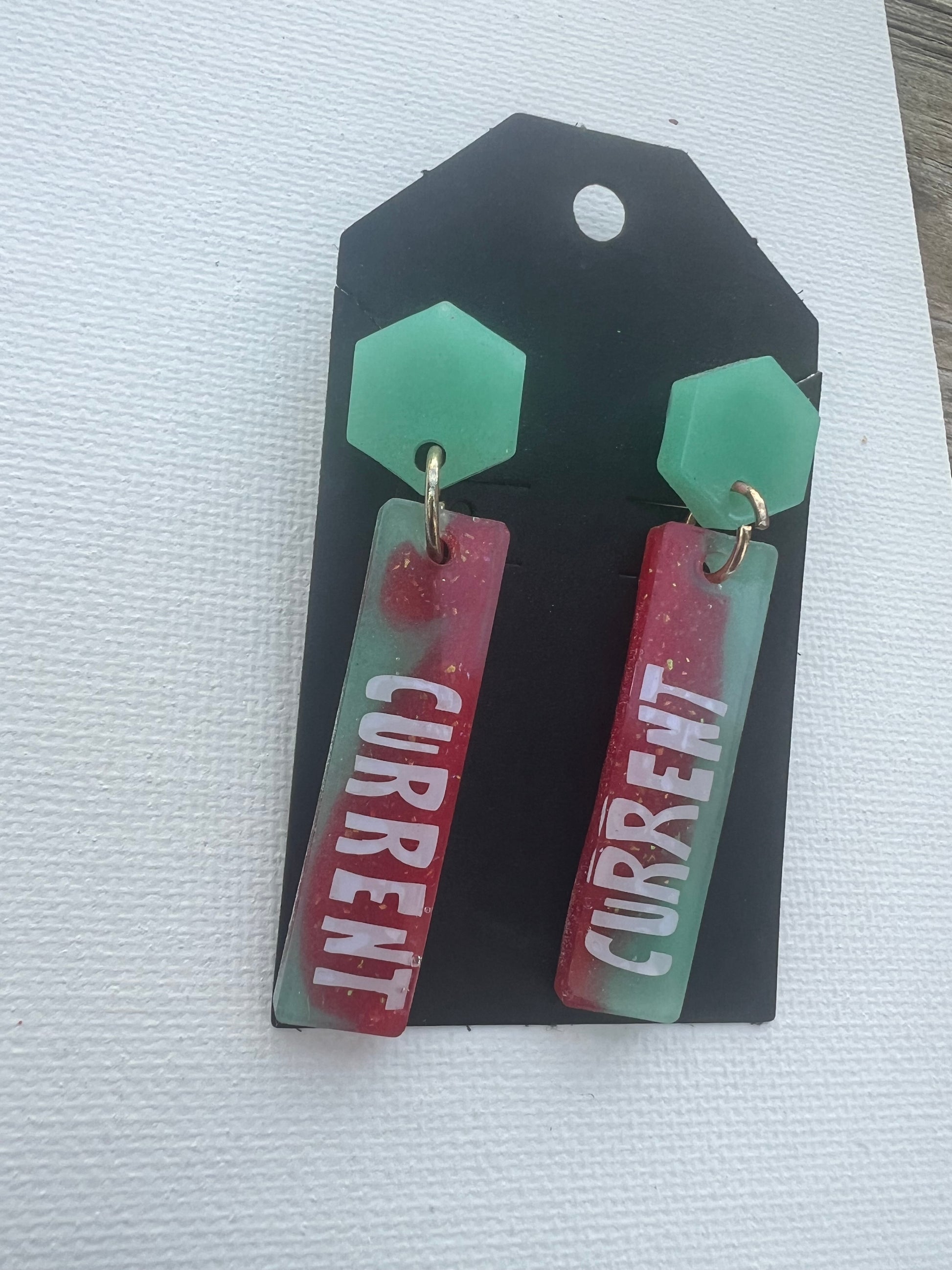 Lightweight, resin poured earrings. Due to each pair, being hand poured, no two pair of the exact same.
