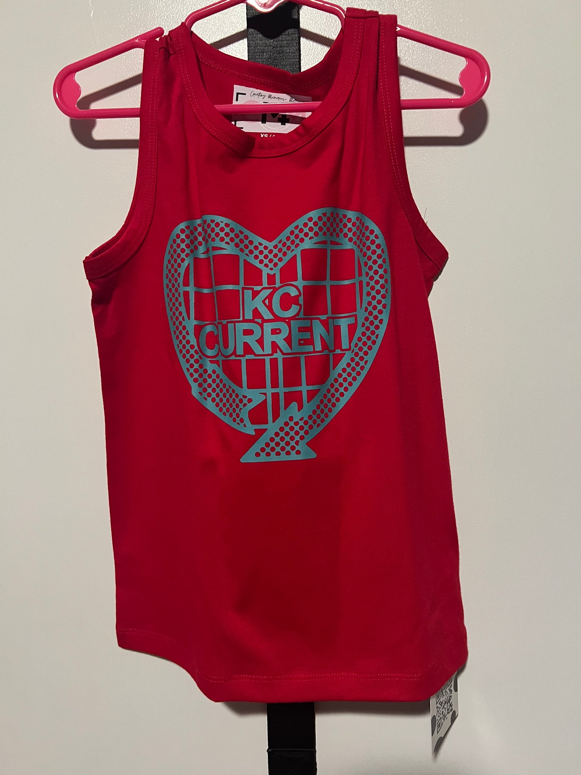 Read current tank with a teal Casey current logo shaped like the Famous western auto That lights up our city skyline.
